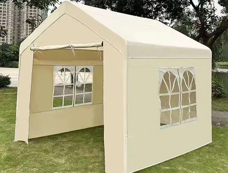 篷布材质:选用防水防晒牛津布 / PVC 篷布,具备抗撕裂、防紫外线特性,有效阻挡日晒雨淋;米色外观简约百搭,搭配拱形透视窗设计,既保障采光又提升视觉质感。