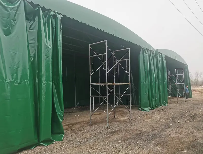 洛阳工业篷房:大型移动伸缩仓库大篷,常见于工地、仓库或户外作业场景。