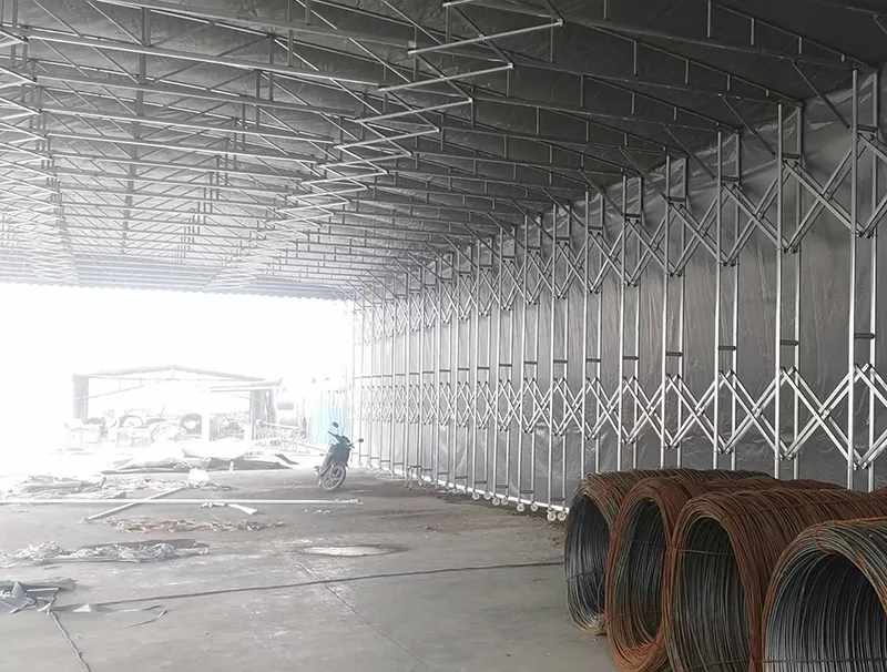 伸缩灵活:通过人工推拉或电动驱动(可选)实现棚体伸缩,收合后不占用额外场地,展开时快速形成封闭仓储 / 作业空间,大幅提升工业场地利用率。